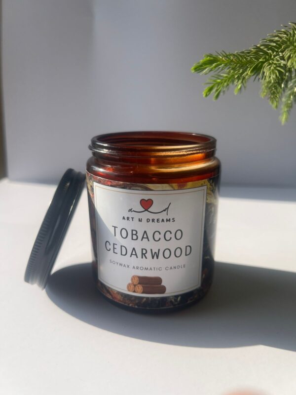 Experience timeless sophistication with our Amber Jar Candle in Tobacco & Cedarwood. Hand-poured using eco-friendly soy wax, this candle combines the rich, smoky notes of tobacco with the grounding essence of cedarwood, creating an atmosphere of warmth and calm. Each jar carries artwork inspired by Pranav Aggarwal’s vibrant creations, turning every candle into a story of resilience and artistry. With its long-lasting fragrance and elegant amber glass, it’s more than a candle — it’s a way to support neurodiverse talent and light up your space with meaning.