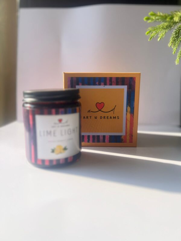 Brighten your space with our large amber jar candle, hand-poured with natural soy wax and infused with the refreshing aroma of Lemongrass. The jar carries artwork by Pranav Aggarwal, turning it into both a fragrance and a canvas of creativity. Each slow-burning candle brings calm energy and positivity, while also supporting Art N Dreams’ mission of empowering neurodiverse artists and fostering inclusion.