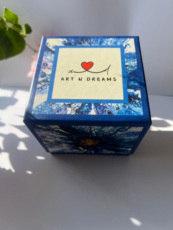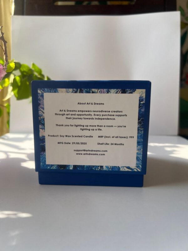 Fill your home with warmth and comfort with our large Candlelight Candle, hand-poured using natural soy wax and infused with the soothing scent of Vanilla. Each piece features artwork inspired by Pranav Aggarwal’s vibrant paintings, making it not just a candle but a keepsake of creativity. With its long burn time, it brings light, fragrance, and purpose — supporting neurodiverse artists through Art N Dreams.